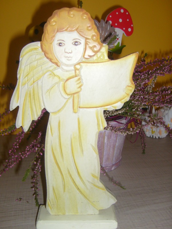 Podczas wizyty kolędowej, nasz zaprzyjaźniony ksiądz ofiarował dla naszego maleństwa jeszcze nienarodzonego pięknego Aniołka Stróża:) - duże zaskoczenia i miła niespodzianka, będzie stał w pokoiku i czekał razem z nami na szczęśliwe rozwiązanie:)