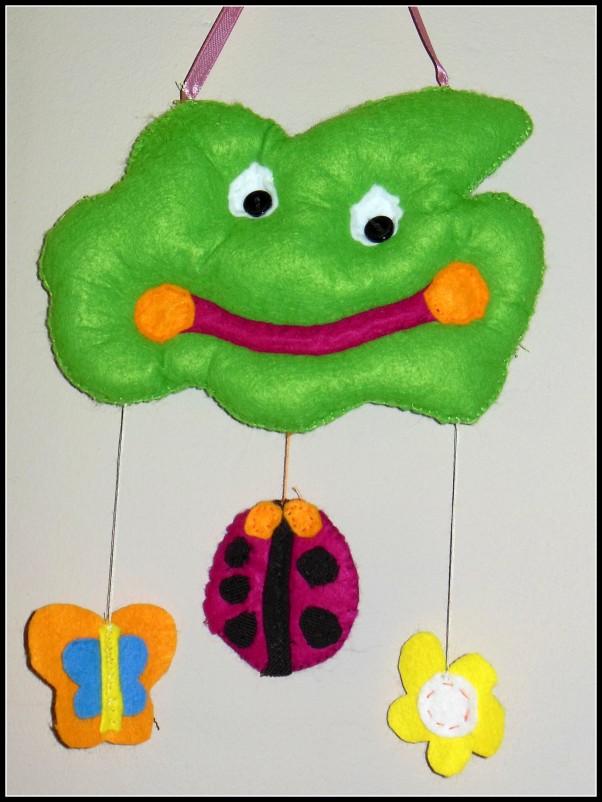 Dziś zrobiłam do pokoiku Małgosi kolejną dekorację. Choć nie wyszło co planowałam bo nie miałam koloru odpowiedniego, ale i tak jestem zadowolona, że udało mi się z braku pomysłu zrobić coś takiego. Uznałam, że jest to zadowolona trawka wraz z biedronką, kwiatkiem i motylkiem :) Idealne do pokoiku córeczki :)