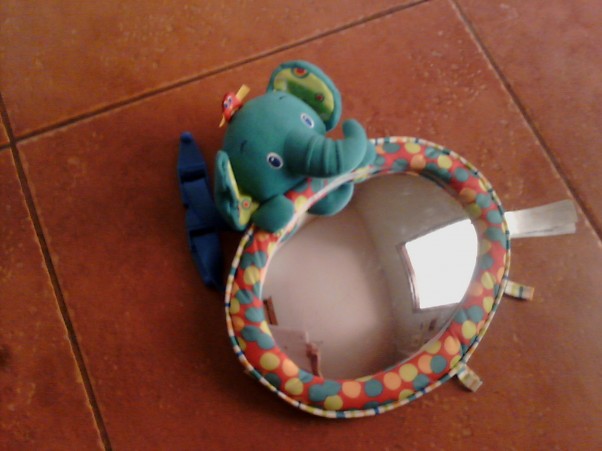 Jeju jakie teraz są piękne zabawki. Uwielbiam je oglądać a gdy kupię to już w ogóle pełnia szczęścia. Dzisiaj gdy wracałam z labolatorium wstąpiłam do komisu i kupilam taką oto cudną zabaweczkę. Jest to lusterko ktore się przywiesza na łóżeczku lub na zagłówek auta. A cena? Marzenie :-)