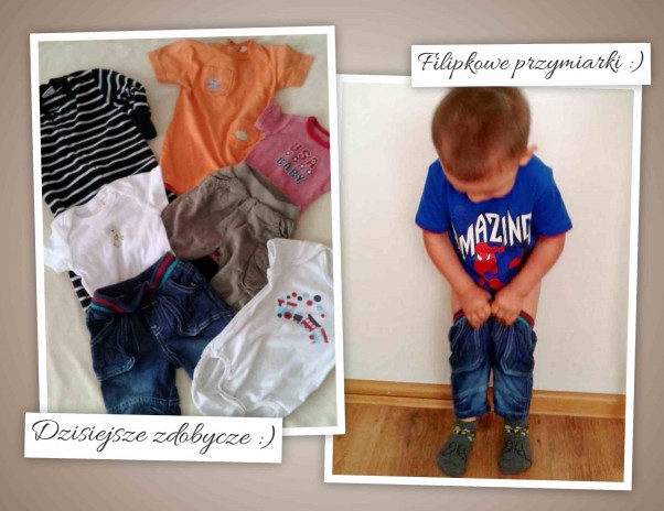 Oczywiście Filipek dorwał się do przyniesionej paczuszki i próbował się wcisnąć w Twoje maleńkie spodenki, ależ było zdziwienie gdy się okazało że są za małe :)