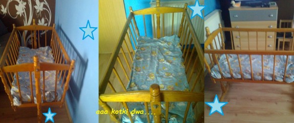 zniesiona ze strychu złożona przez tatę i gotowa do odmalowania :) nie wiem czyja jest ale bardzo się ucieszyłam kiedy Twoja babcia powiedziała ze ona ta stoi :) więc najpierw tata ją odświeży a potem stanie na miejscu łóżeczka ale tylko na pierwsze miesiące Twojego życia :) potem łóżeczko wraca do łask :) zakochałam się w niej :)