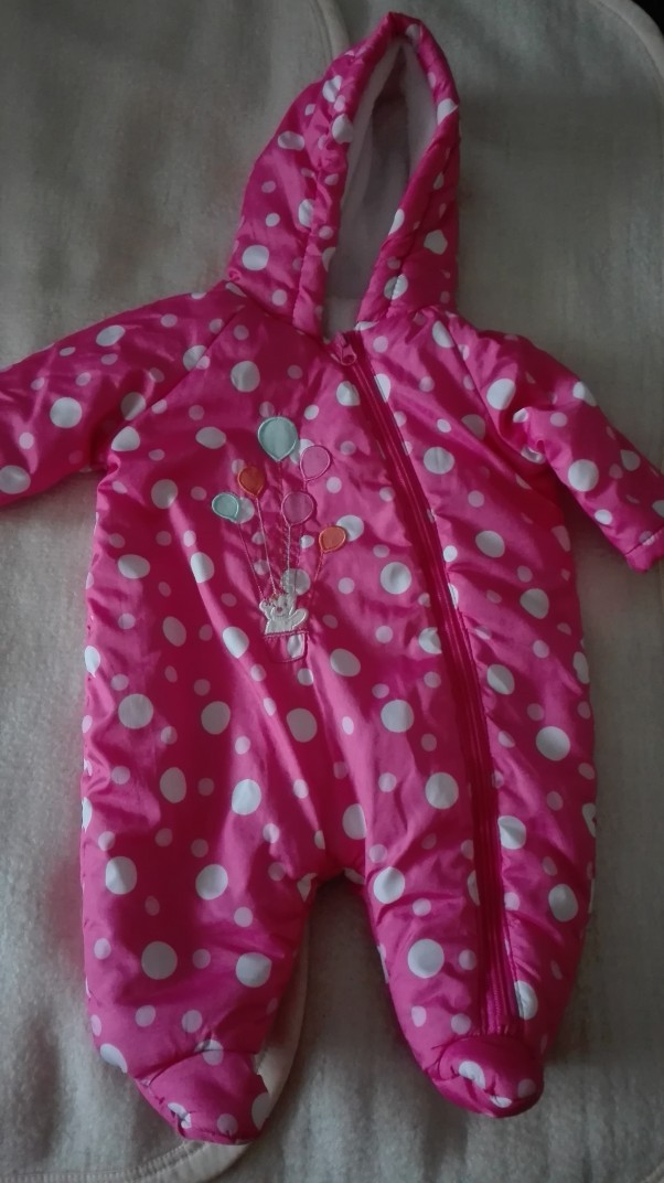 Śliczny różowy kombinezon. Na pewno założę go małej w dniu wypisu ze szpitala.