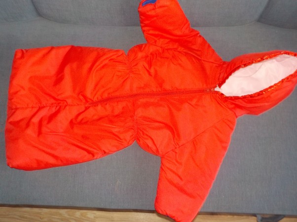 Znalazł się jeszcze na strychu u teściowej kombinezon po szwagierce. Bardzo mi się podoba i wydaje się wygodny. Poprosiłyśmy znajomą krawcową o wymianę zamka i zamianę futerka w koło główki (było już brudne i wychodziły z niego kłaczki) na tasiemkę ;-)