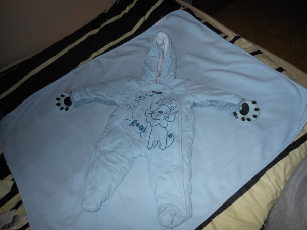 Kombinezon co prawda w niebieskim kolorze, bo jest po chłopczyku, ale bardzo słodki. Na pierwszą zimę :)
