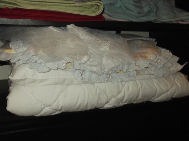 A tutaj kołderka odświeżona złożona i czeka na moment by ją rozłożyć w łóżeczku i dodatkowo 2 moskitiery jedna na fotelik samochodowy a druga do domu.