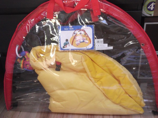 Od babci Sewcia dostaliśmy matę do leżenia dla małego i kilka zabawek które można tam zawiesić. Mata mięciutka pałąki dość sztywne mocowania więc tylko się uśmiechnąć:D