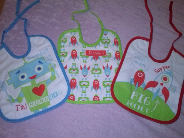 kolorowe śliniaczki - miejmy nadzieję, że apetyt będzie naszemu bobaskowi dopisywał. Na razie podobają się bratu - może będzie karmił siostrę marchewką albo jabłuszkiem :)