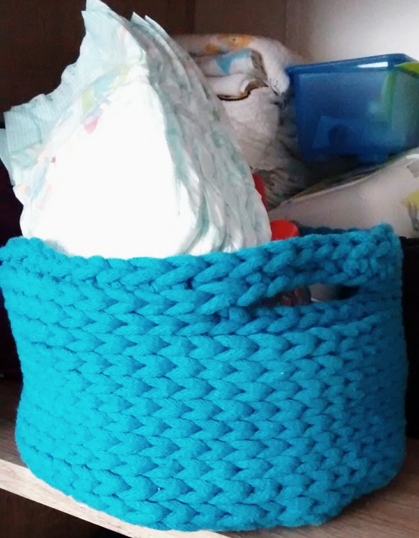 Ciocia nie przestaje nas rozpieszczać- oto udziergany koszyczek na rozmaitości, żeby pomóc mamie w ogarnianiu tego całego ekwipunku :)