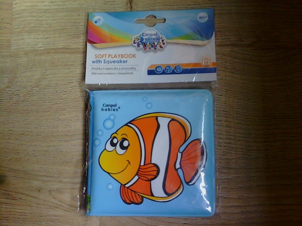 A dzisiaj dołączyła do naszej na razie małej kolekcji zabawek taka oto książeczka. Kolorowa, wodoodporna i mięciutka. Jednym słowem wielofunkcyjna.