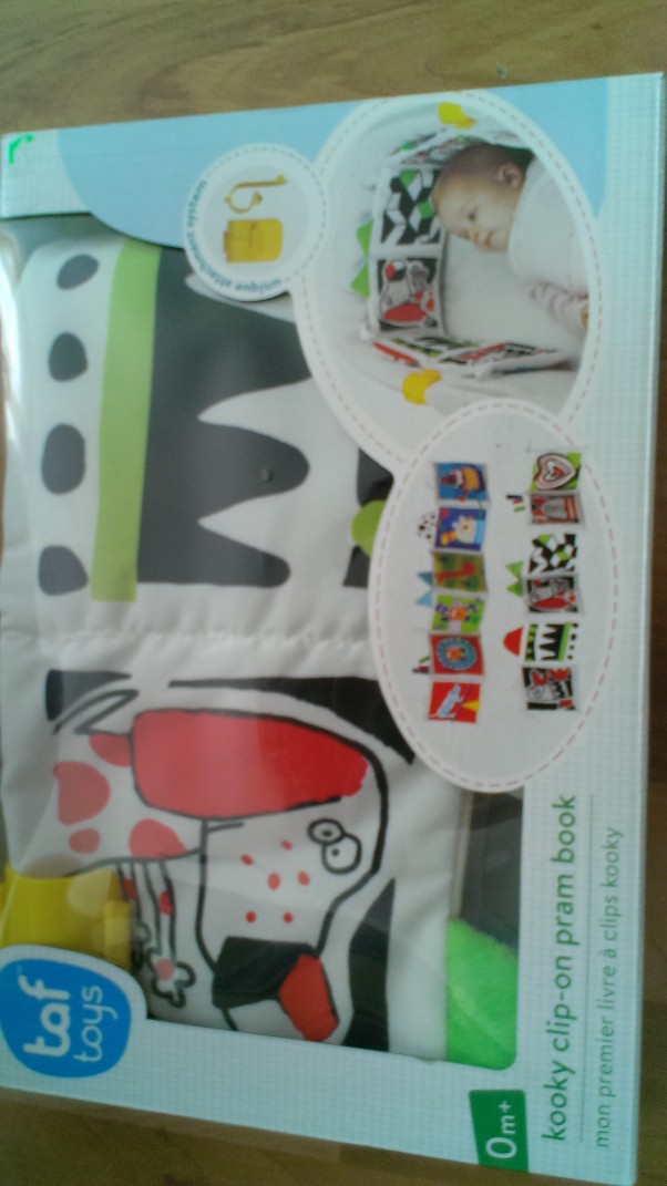 znalazlam fajny gadzet dla Maluszka. Ksiazeczke, rozkladana, do przyczepienia na wozek albo do łóżeczka. Jest dwustronna, po jednej stronie dla dzieci 0-3mce zestaw rysunkow czarno bialych z elementem koloru, a po drugiej stronie dla 3-6 miesiecznych bobasow, ta wersja juz pelna kolorow i wzorkow i lusterko. Polecam dla kazdego, bo rozwija zmysly juz od pierwszych dni niemowlat :)