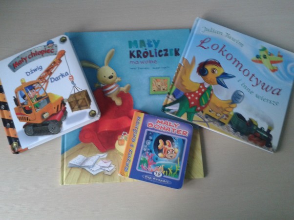 Układałam dziś na półkach w Marcelka pokoju i znalazłam kilka książeczek, które będą fajne do poczytania dla małej Oli :) Cieszę się, że chociaż te zostały, gdyż mnóstwo pozycji z biblioteczki Marcelka na okres 0-2 latka rozdałam znajomym :)