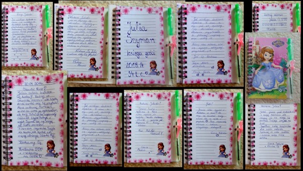 Taką właśnie księgę zrobiłyśmy mojej córeczce z moimi kuzynkami,koleżankami,ciocią,babcią i prababcią. Każda wpisała tam życzenia dla naszej małej księżniczki, będzie to cudowna pamiątka do pokazania Julce za parę lat.