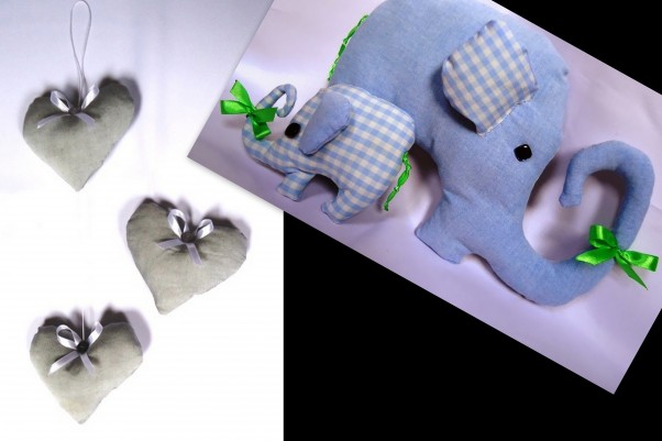 ...spędzona z igłą i nitką :) serduszka uszyłam oczywiście w szarości...a słoniki przytulanki mogą być już chłopięce!