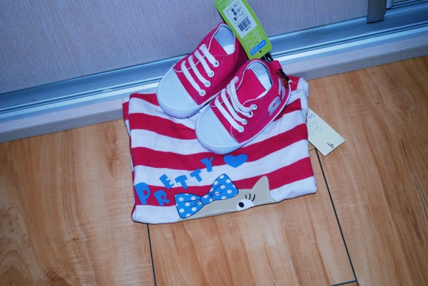 Buciki i bluzeczka z krótkim rękawkiem super komplecik na lato. Córcia na pewno będzie wyglądała ślicznie :) Już nie mogę się doczekać kiedy ją zobaczę, uściskam.