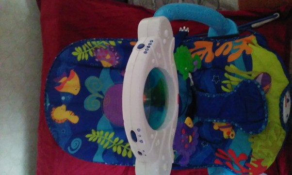 Dostałyśmy leżaczek :) ma fajne melodyjki i szumi jak morze :) świeci na kolorowo a jego wibracje są takie łagodne że gdy chwilę trzymałam na nim rękę poczułam się senna a Ty mnie kopnęłaś :) chyba i Tobie się podoba...
