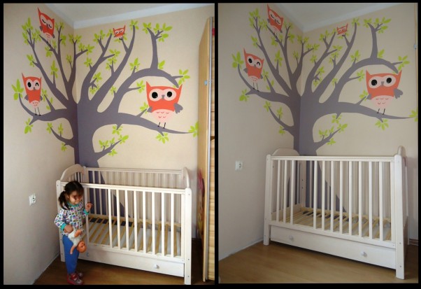 Łóżeczko stanęło w miejscu, gdzie będzie stało na co dzień. Wymyte. Planuje je odświeżyć i zmienić jego kolor na biało, teraz prezentuje się tak. Szczebelki do włożenia oraz poziom do zmiany:)