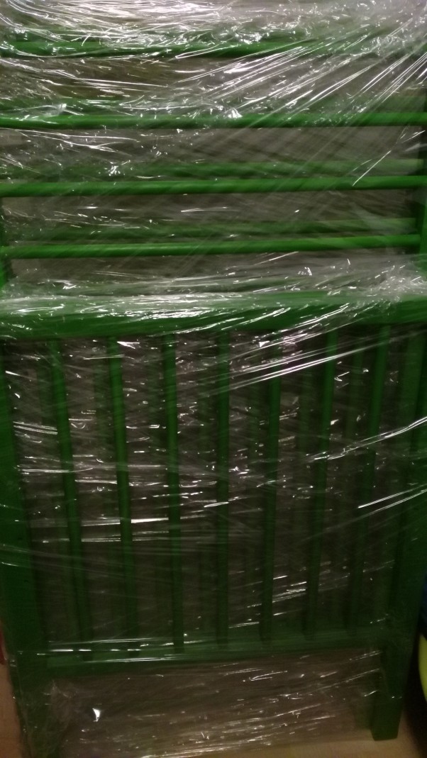 Tyle naszego szczęścia że nie trzeba było kupować nowego. Łóżeczko dla naszego dzieciątka otrzymaliśmy od mojego brata. Drewniane standardowe, pomalowane na biało... jednak dla nowego użytkownika trzeba by było je odświeżyć :) Zamarzył mi się zielony kolor. Nikt ze znajomych nie miał zielonego łóżeczka. Zielone pasuje dla chłopca i dla dziewczynki. Tylko gdzie ja znajdę farbę z atestem w zielonym kolorze? Tatuś podjął wyzwanie :) znalazł. Kupił. Pomalował. jeszcze czeka na skręcenie :) Ale jest naprawdę piękne.