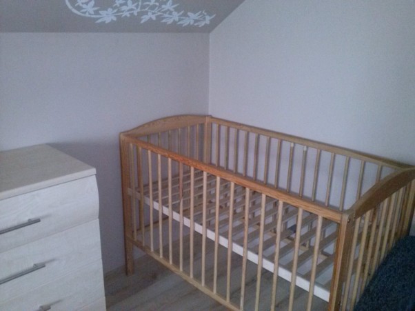 łóżeczko zniesione ze strychu, złożone i znalazło swój kącik w naszej sypialni - z pościelą jeszcze czekamy