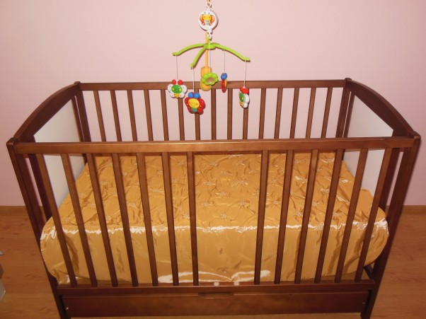 Zgodnie z obietnicą pochwalę się cóż ja takiego wymyśliłam sobie. Łóżeczko z chwilowo narzutą na łóże. Dałam tak by nie było przebicia, gdy poziom łóżeczka jest taki wysoki. Nic nie widać i nawet można za tą zasłoną trzymać jakieś pampersy czy coś co jest potrzebne na szybko. Myślę, że opracowałam dobry patent ;) Łóżeczko stoi już u małej w pokoiku, pozostało dokupić materac i 1 prześcieradło. Karuzela, którą dostała również już zamocowana. Efekt bombowy jak dla mnie ;) Tylko jak pojade na wieś do rodziców muszę znaleźć brakujące szczebelki.