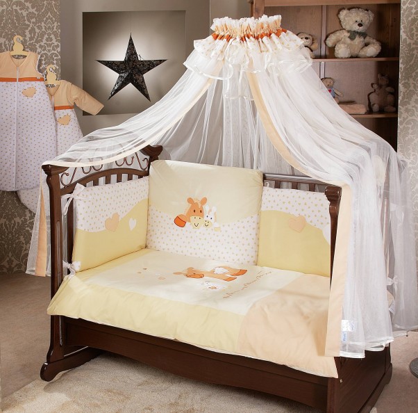 Marzy się nam takie łóżeczko z baldachimem w uniwersalnym kolorze pościeli. Pokój będzie delikatny biało - kremowy a więc takie zestawienie by bardzo pasowało :) Mamy nadzieję, że uda nam się to wszystko skompletować. Jak na razie mamy tylko brązowo-białe łóżeczko i prześcieradełko białe.