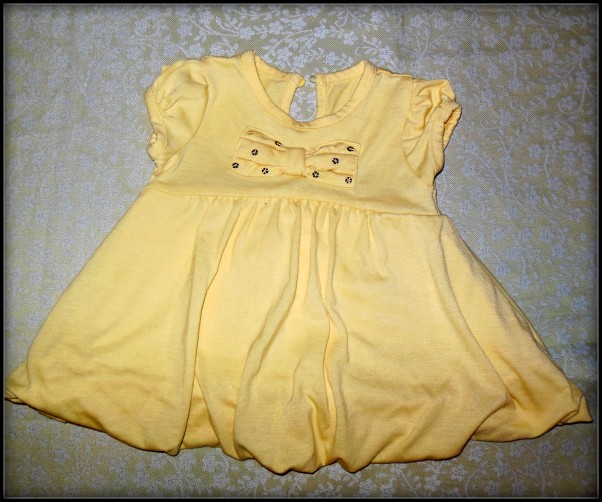 Patrząc na to jakie niestety są ceny ubranek dla dzieci w sklepach, postanowiłam zaszaleć w lumpeksach. Nie mam co prawda zbyt wiele czasu, ponieważ wciąż trwają remonty, ale co nie co udało mi się wyhaczyć w bardzo atrakcyjnych cenach i oczywiście w stanie idealnym . Nie lubię chińskiego towaru, a w lumpeksach mamy porządne Niemieckie , Polskie i Angielskie ubranka. Wszystko widać jak wygląda już po praniach. Więc można szaleć ;) Oto prześliczna żółta sukieneczka.