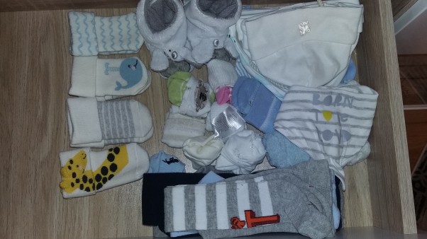 W naszej szufladzie dla Maleństwa znalazły już miejsce maleńkie czapeczki, chusteczki, rajstopeczki i skarpeteczki. większość również podarowane przez ciocie.