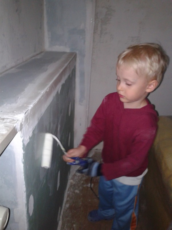 Przed narodzinami siostrzyczki trzeba odświeżyć pokoik :) Marcelek pomaga, gdyż musi pilnować, aby nie było za dużo różowego koloru ;)