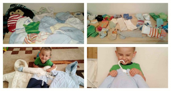 Dzisiejszy dzień spędziliśmy z Filipkiem na segregacji słodziutkich maleńkich skarpeteczek, czapeczek i zapakowaniu odświeżonych kombinezonów na zimę. Patrząc na te meleńkie cudeńka nie sposób się nie wzruszyć i pomyśleć że już tak niewiele dni dzieli nas od spotkania z Naszym Adasiem. Filip jak na starszego brata przystało dzielnie pomagał mamie i robił swoje przymiarki :)