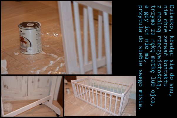 Na chwilę obecną pierwsza warstwa białej farby jest już na powierzchni kołyski :) Zawsze to krok w przód.