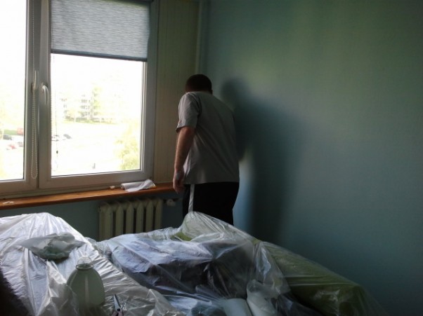 Święta, święta i po świętach ;) Czas zakasać rękawy i wziąć się za szykowanie pokoju dla Juniora. Włączył mi się już chyba syndrom wicia gniazda bo wczoraj do 1 w nocy wynosiłam bibeloty z małego pokoju i myłam ściany po psie. Śmiać mi się chciało jak po północy wpadłam na pomysł umycia okien ;) Na szczęście skończyło się tylko na umyciu ram. A dzisiaj od rana praca wre :) Najpierw wybraliśmy się z mężem zamówić nowe rolety dla Juniora a potem po farbę i niezbędne akcesoria. Takim sposobem mąż maluje a ja nadzoruję ;) Kolor jasny błękit. Do tego zielone dodatki - kanapa, rolety, grzejnik. Na razie pokój wygląda jak pobojowisko ale oczami wyobraźni widzę jaki będzie śliczny jak wszystko skończymy :)