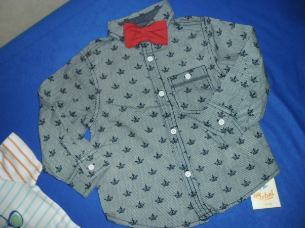A taką oto elegancką koszulę z czerwoną muszką kupiła wnusiowi Babcia Ewa.Koszula jest większa więc swoje odczeka w szafie,ale jak tylko Malutki do niej dorośnie na pewno będzie robił wrażenie :)
