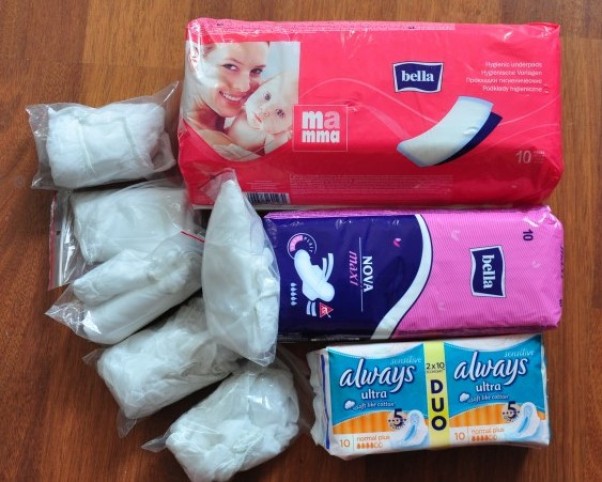 Późnym wieczorem dotarł do mnie kurier z pierwszą dostawą rzeczy do szpitala-wkłady poprodowe, podpaski i majtki poporodowe :)