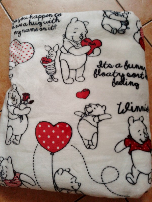 Dziś nie oczekiwanie odwiedził mnie wieczorem brat i Adaśko dostal swój pierwszy prezent- prześliczny mięciutki i przesłodki kocyk z motywem Kubusia Puchatka. Na pewno bardzo nam się przyda i Adaś otulony w cieplutki polar będzie miał piękne sny :)
