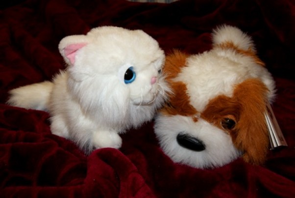Dzisiaj przyszła do mnie koleżanka z którą znam się od przedszkola. Przyniosła dla moje syneczka pieska i kotka, prześliczne zabaweczki. Niestety Mareczek początkowo będzie mógł tylko na nie patrzeć bo zjadłby im całą sierść, ale do wystroju pokoiku maluszka będą jak znalazł. Piękny prezencik na zakończenie miesiąca.