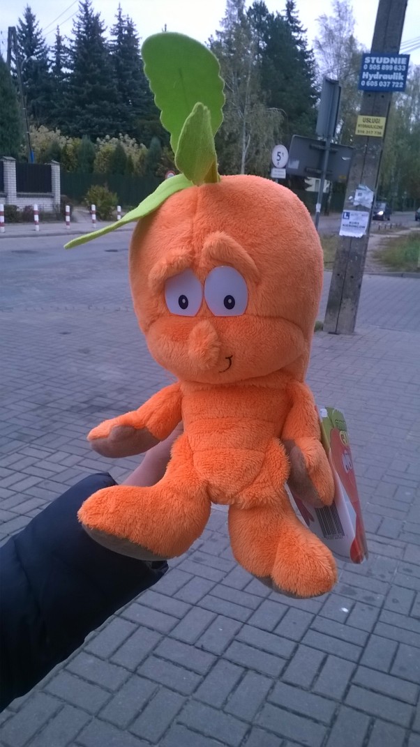 W sieciach sklepów jest fajna akcja ze za zakupy zbiera sie naklejki na maskotki i my właśnie taką dzisiaj fajną marchewkę Marysię dostaliśmy. To pierwsza maskotka mojego dziecka