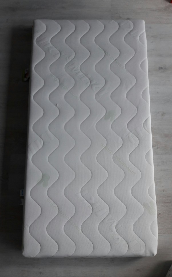 Materacyk już odświeżony, pokrowiec wyprany, teraz tata musi kupić łóżeczko. Mamy materac firmy Fiki Miki antyalergiczny dwustronny. Jest świetny, Julcia też na nim spała.