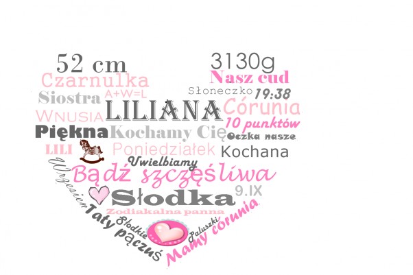 Moja kochana córeczka ma już 2 miesiące i tydzień a oto jej metryczka zrobiona przeze mnie. Oprawiona stanie przy jej łóżeczku.