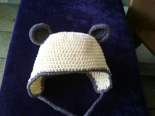 Jako, że termin przyjścia na świat naszego pierworodnego zbliża się wielkimi krokami, wydziergałam jakiś czas temu taką oto cieplutką czapeczkę, żeby na wyjście ze szpitala główka maleństwu nie zmarzła :-)