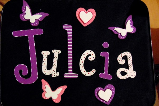 Taki oto śliczny napis, motylki i serduszka zrobiła mi dziś mamusia z folii piankowej :) a jak już będę miała kołyskę to przyklei mi to wszystko koło niej na fioletowej ścianie, takie ta moja mamusia ma pomysły :)