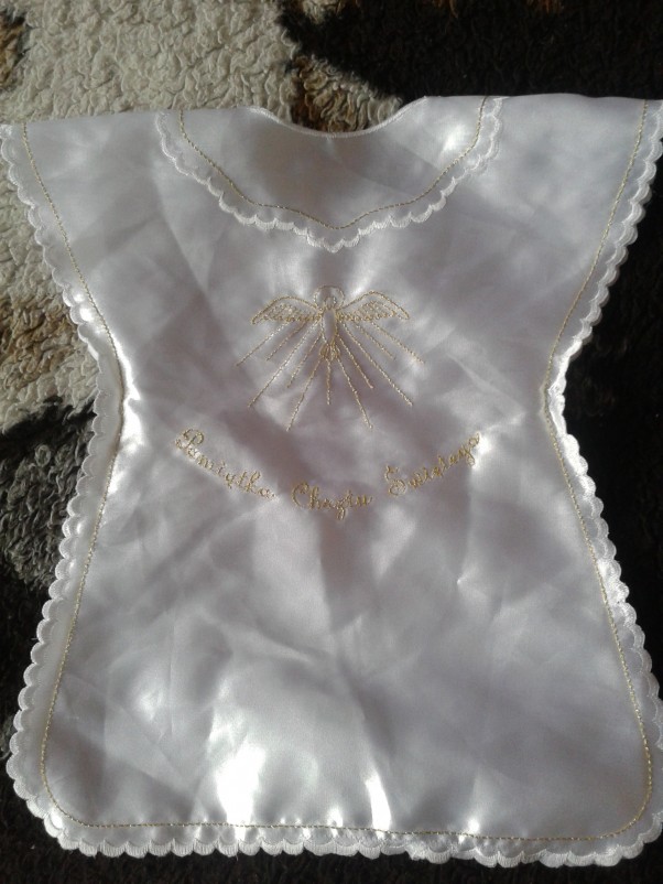 Mam dla Oli przygotowane już krzyżmo do chrztu. Krzyżmo to mam z chrzcin synka i teraz posłuży Oli. W moich okolicach jest taki przesąd, aby chrzcić dzieci z jednym krzyżmem, gdyż wtedy mają ze sobą silniejsze więzi. Generalnie przesądna nie jestem, ale ten akurat nie jest szkodliwy, więc na wszelki wypadek ... :)