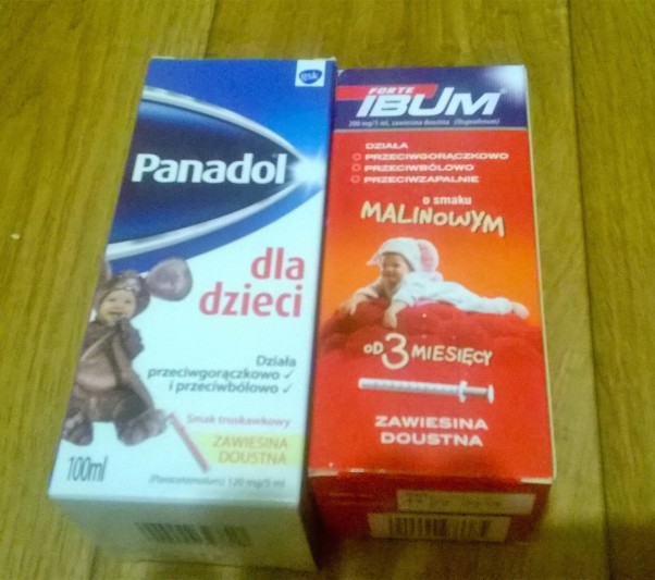 Skoro mamy już termometr, przyda się również lek przeciwgorączkowy, a najlepiej dwa, jeden z paracetamolem drugi z imuprofenem. Dlaczego dwa? Bo można je stosować zamiennie i nigdy nie wiemy, który szybciej pomoże dziecku. Stosujemy je po ukończeniu przez dziecko 3 miesięcy, zawsze pod nadzorem pediatry.