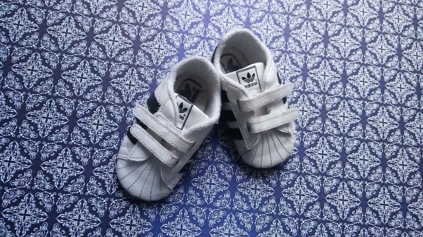 Buciki niechodki dla dzidziusia. Takie śliczne butki z adidasa dostaliśmy od siostry męża. Dobrze że zostawiła ubranka po swoim dziecku i nas teraz nimi obdarowuje.