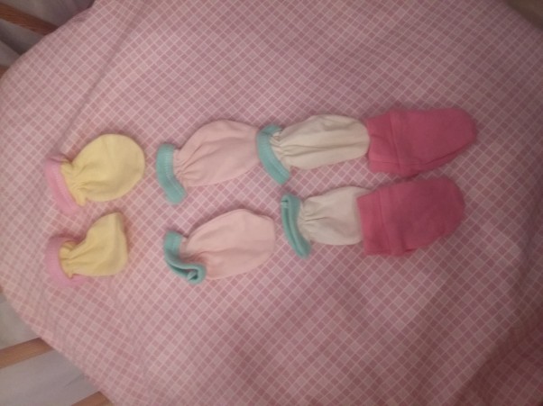 powinny uchronić córeczkę przed podrapaniem ,jakie one są maleńkie ,zapomniałam ,że noworodki mają takie małe łapki