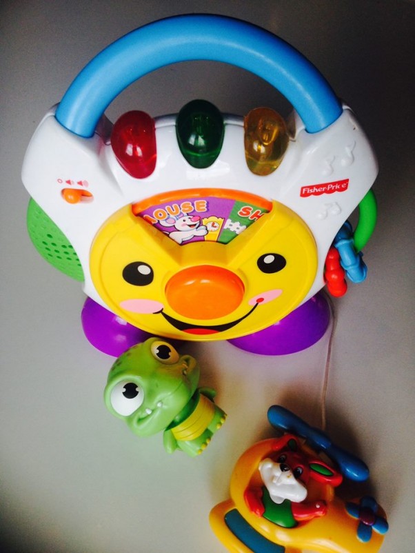 I to co najbardziej cieszy oko- zabawki! Najbardziej jestem zadowolona z zabawki fisher- price. Jest śliczna, kolorowa i grająca. Tyle radości za całe 18 zł ;-)