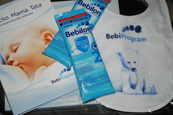 Otrzymałam dziś przesyłkę niespodziankę od bebilon w tym dwa mleka próbki , śliniaczek oraz dziecko mama tata poradnik ;)