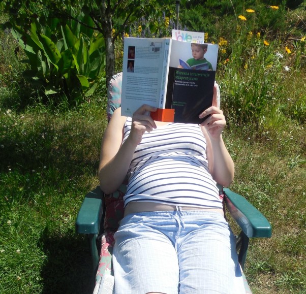 Postanowiłam na początek poszerzyć wiedzę - książka "Wczesna interwencja terapeutyczna" Jagody Cieszyńskiej i Marty Korendo to ciekawa lektura dla wszystkich rodziców - opisuje jak od noworodka do 6 r.ż. zdrowe dziecko powinno się rozwijać i jak je stymulować- pozwala to wychwycić szybko nieprawidłowości i skonsultować się z terapeutą, rehabilitantem.