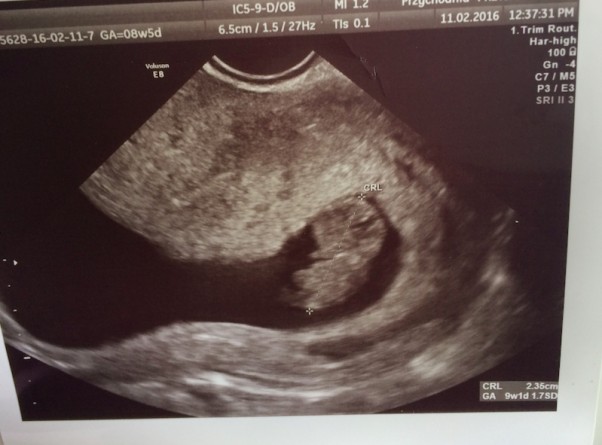 Co do samej wizyty to była bardzo dokladna. Aż za bardzo... tysiace wymazow, 25minutowy wywiad... No nic, było też USG podczas ktorego w końcu usłyszałam bicie serca maluszka. Zobaczyłam jak macha rączkami.