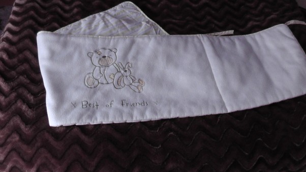 Tym razem kupiłam ochraniacz na łóżeczko w kolorze neutralnym , zarówno dla dziewczynki jak i chłopczyka będzie pasowało. Podobał mi się motyw misia i króliczka i materiał. Jest mięciutki i przyjemny, mam nadzieję, że z łóżeczkiem będzie się fajnie komponowało. Tylko w końcu po łóżeczko muszę jechać bo odkładam z tygodnia na tydzień. Idzie wiosna dziś u nas pięknie świeci słoneczko to i chęci więcej do przygotowań.
