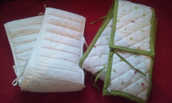 Łóżeczka jeszcze nie mam ale ochraniacze już są :) jedne białe drugie zielone i najważniejsze że osłaniają całe łóżeczko a nie tylko jedną jego część lub połowę. Chcę wiedzieć że gdy mój Świat zacznie się kręcić w łóżeczku nie uderzy o żaden szczebelek. I że nie będzie nic wiało słońce przeszkadzało lub promienie telewizora...Mają chronić mój Skarb więc muszą być odpowiednie :)