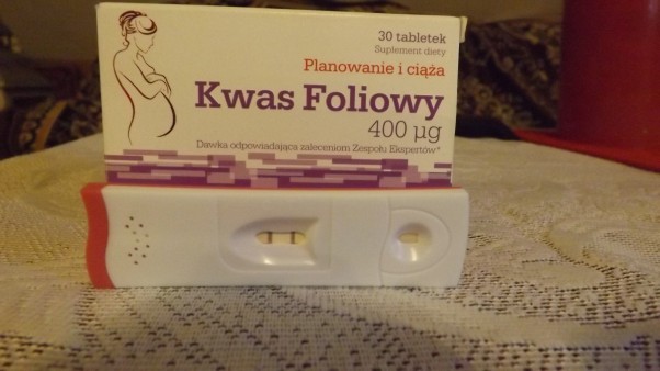 A wszystko zaczęło się od tego zestawu. Kwas foliowy mój niezbędnik już od kilku miesięcy. Z kolei 2 wyraźne kreski ujrzałam pięknego sobotniego poranka, który odmienił moje życie.